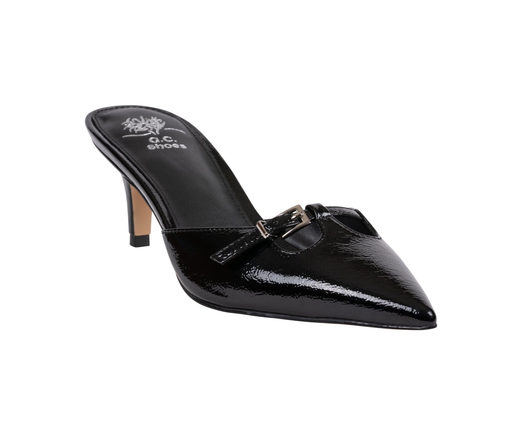 The Simone sandal by GC Shoes redefines sophistication with its sleek patent finish and chic kitten heel. Designed with a modern pointed toe and polished buckle detail, it offers a perfect blend of elegance and comfort. Ideal for both day and evening wear, Simone adds a refined, fashion-forward touch to any ensemble.