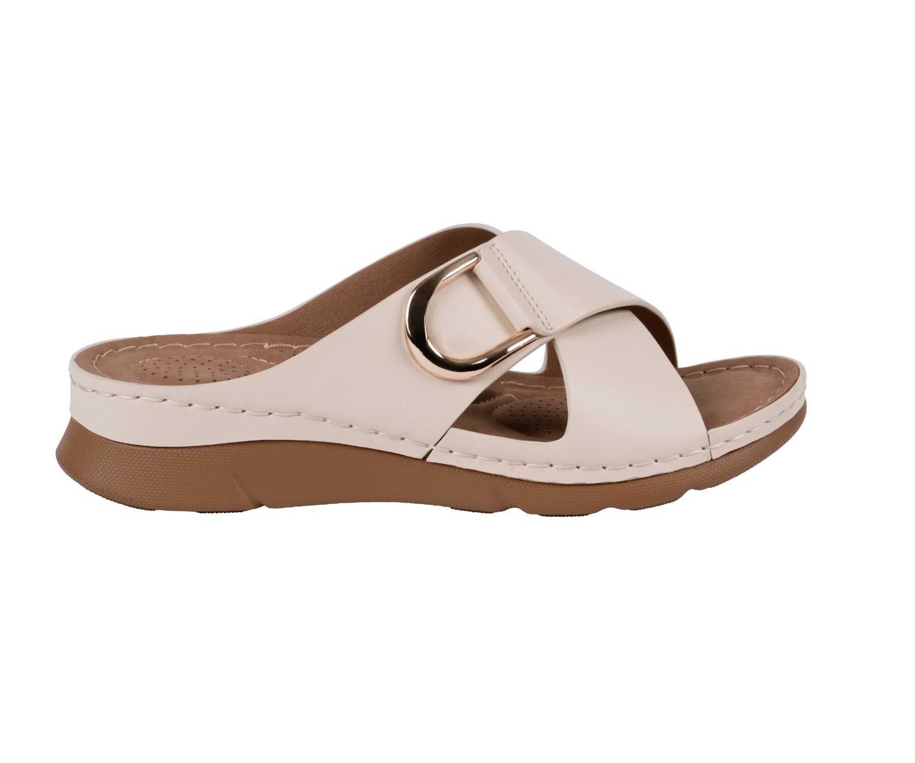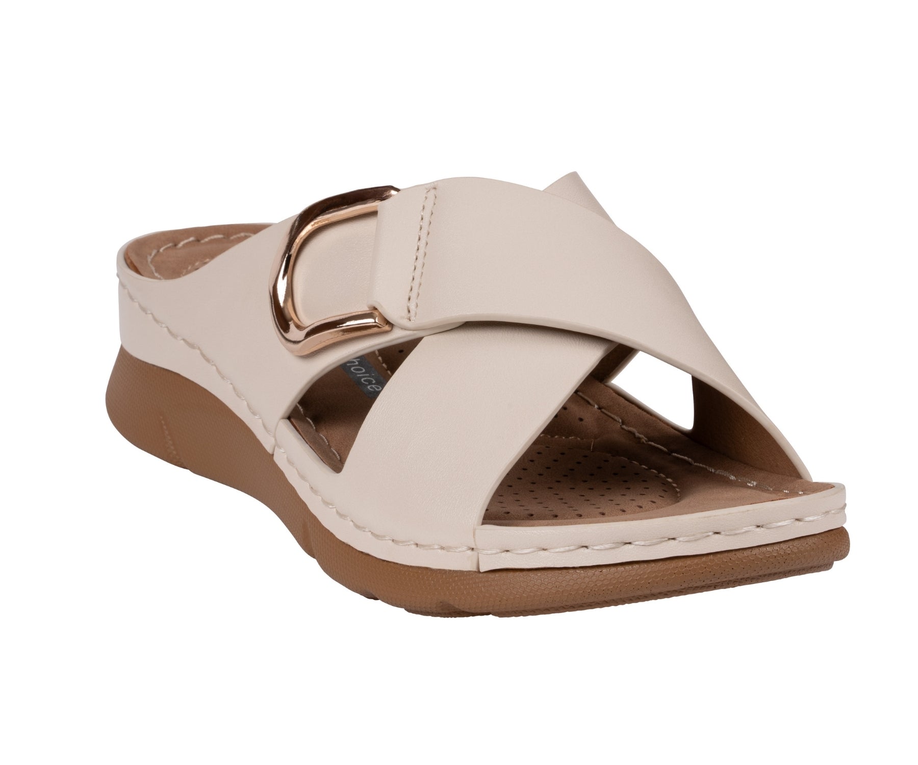 Women's Eanna Nude Crisscross Hardware Comfort Sandals
