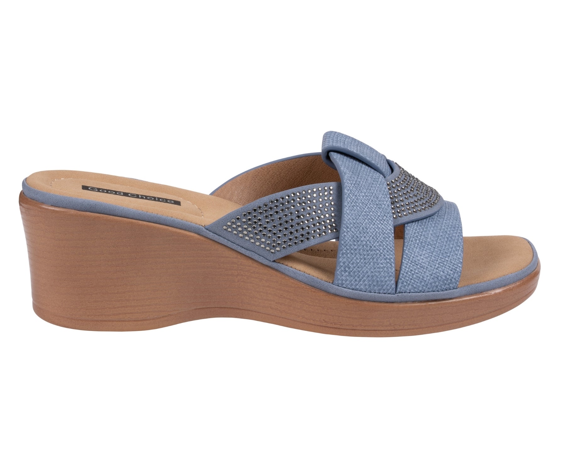 The Selva sandal by GC Shoes offers a stylish blend of comfort and sophistication. Featuring soft cross-band straps with subtle shimmer detailing, it adds a touch of sparkle to any outfit. The cushioned insole and low wedge heel provide supportive comfort, making Selva perfect for all-day wear with effortless polish.