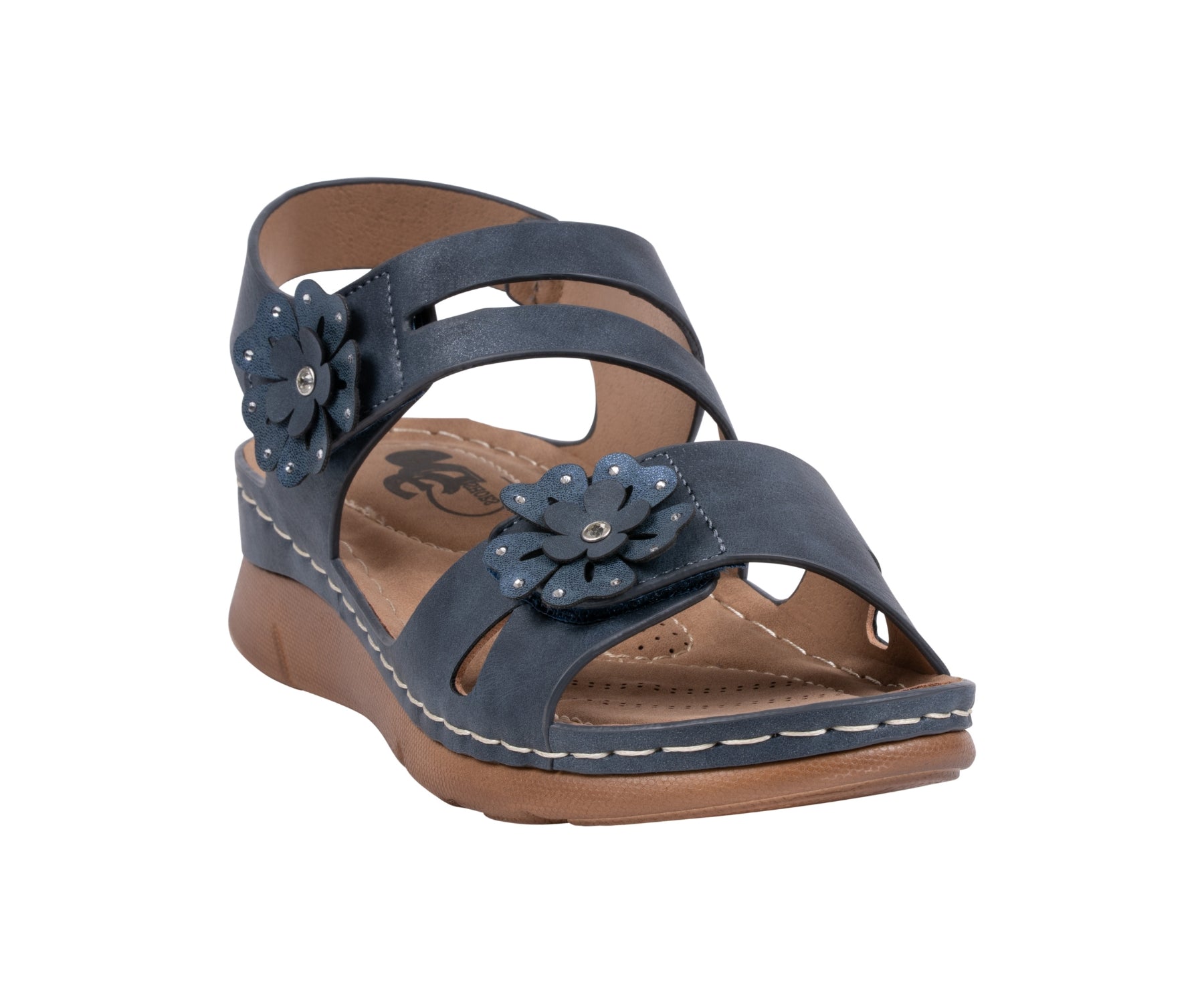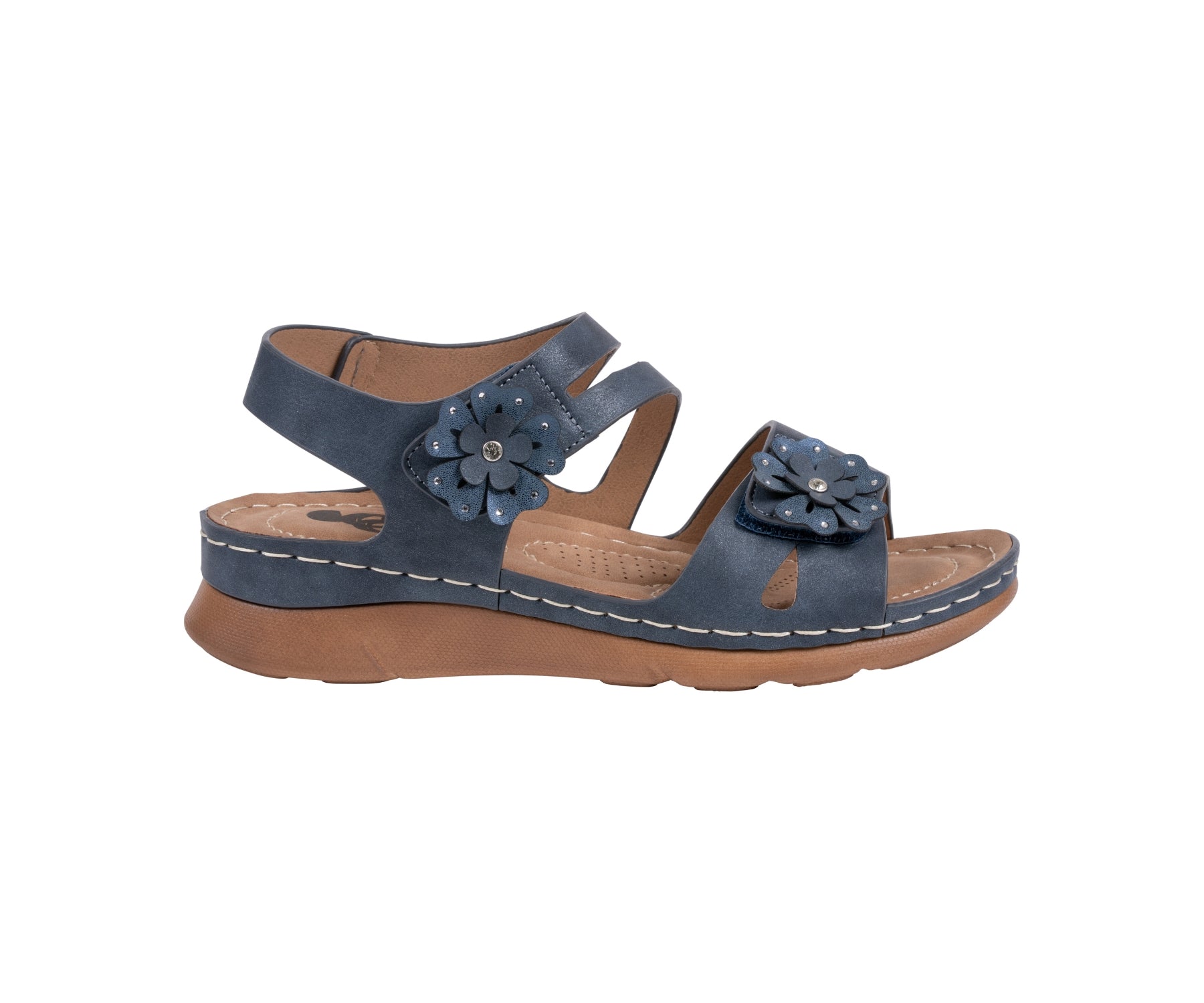 The Cadance sandal by GC Shoes offers a perfect mix of charm and comfort. Designed with double Velcro bands for easy adjustability, it ensures a secure and personalized fit. Adorned with delicate floral accents, Cadance combines feminine detail with practicality, while the cushioned footbed provides lasting comfort for all-day wear.