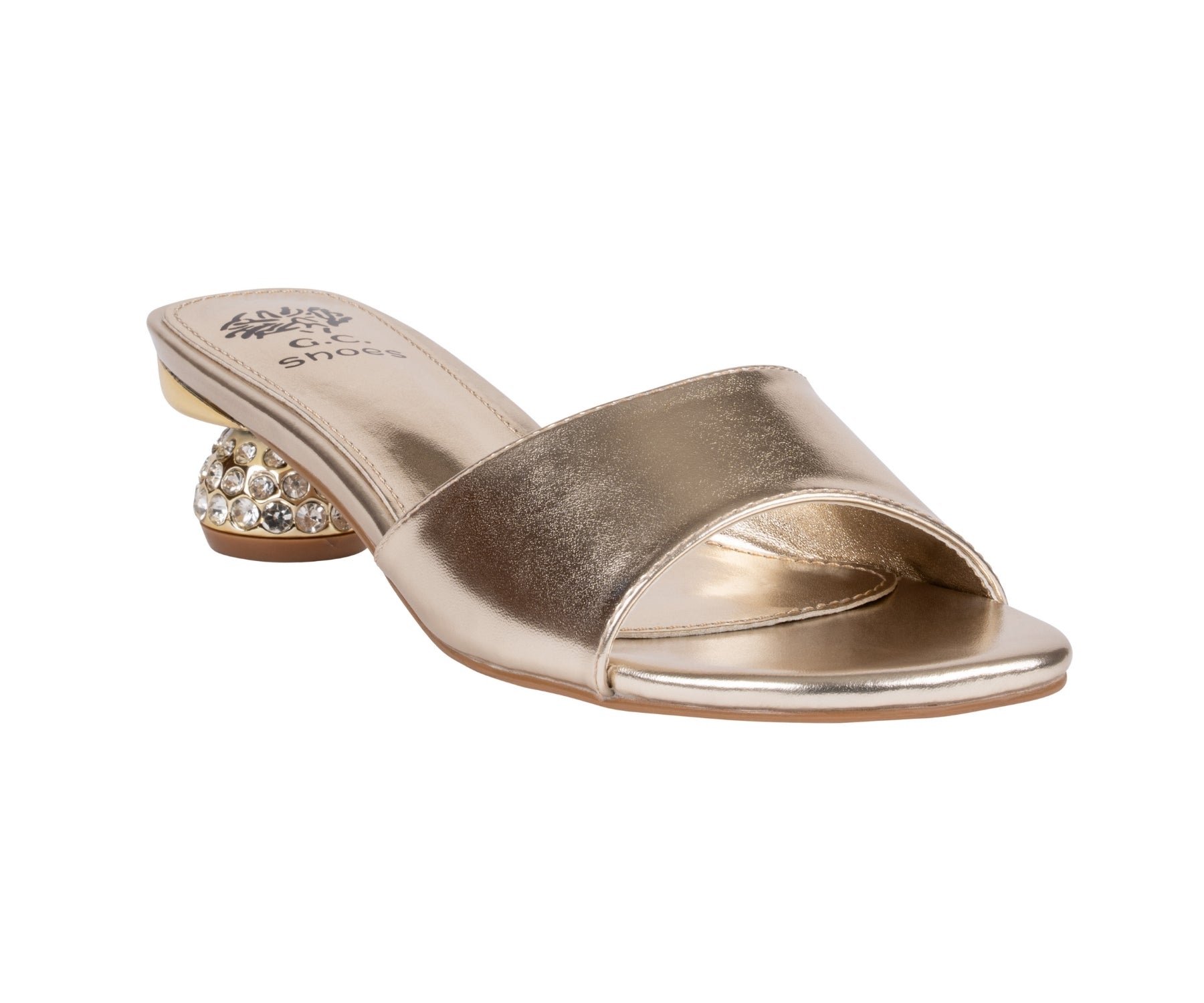 The Noho sandal by GC Shoes embodies sleek sophistication and minimalist design. Featuring a single wide strap and a sculpted metallic heel, it delivers modern elegance with a touch of shine. The cushioned insole ensures comfort, while its versatile silhouette makes Noho the perfect choice for refined day-to-night style.