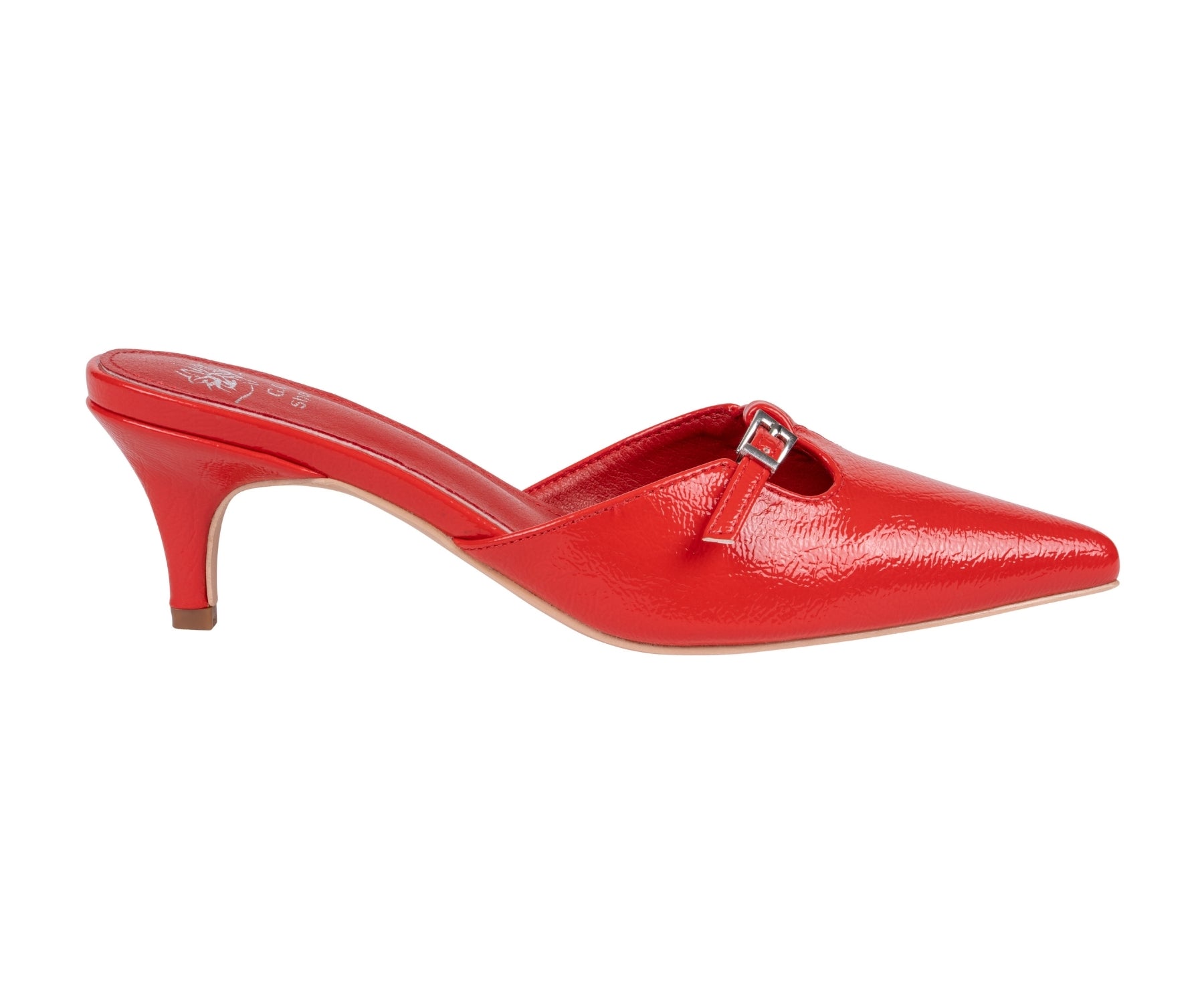 The Simone sandal by GC Shoes redefines sophistication with its sleek patent finish and chic kitten heel. Designed with a modern pointed toe and polished buckle detail, it offers a perfect blend of elegance and comfort. Ideal for both day and evening wear, Simone adds a refined, fashion-forward touch to any ensemble.