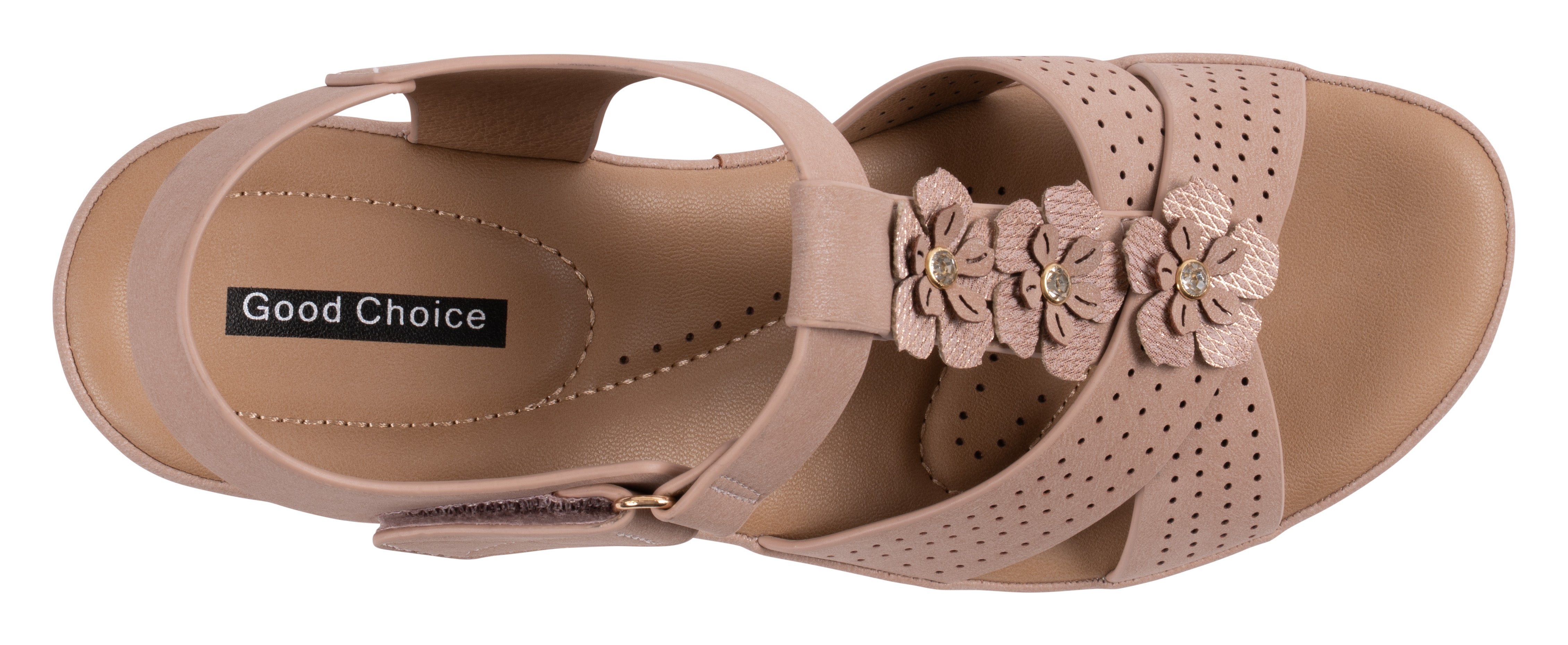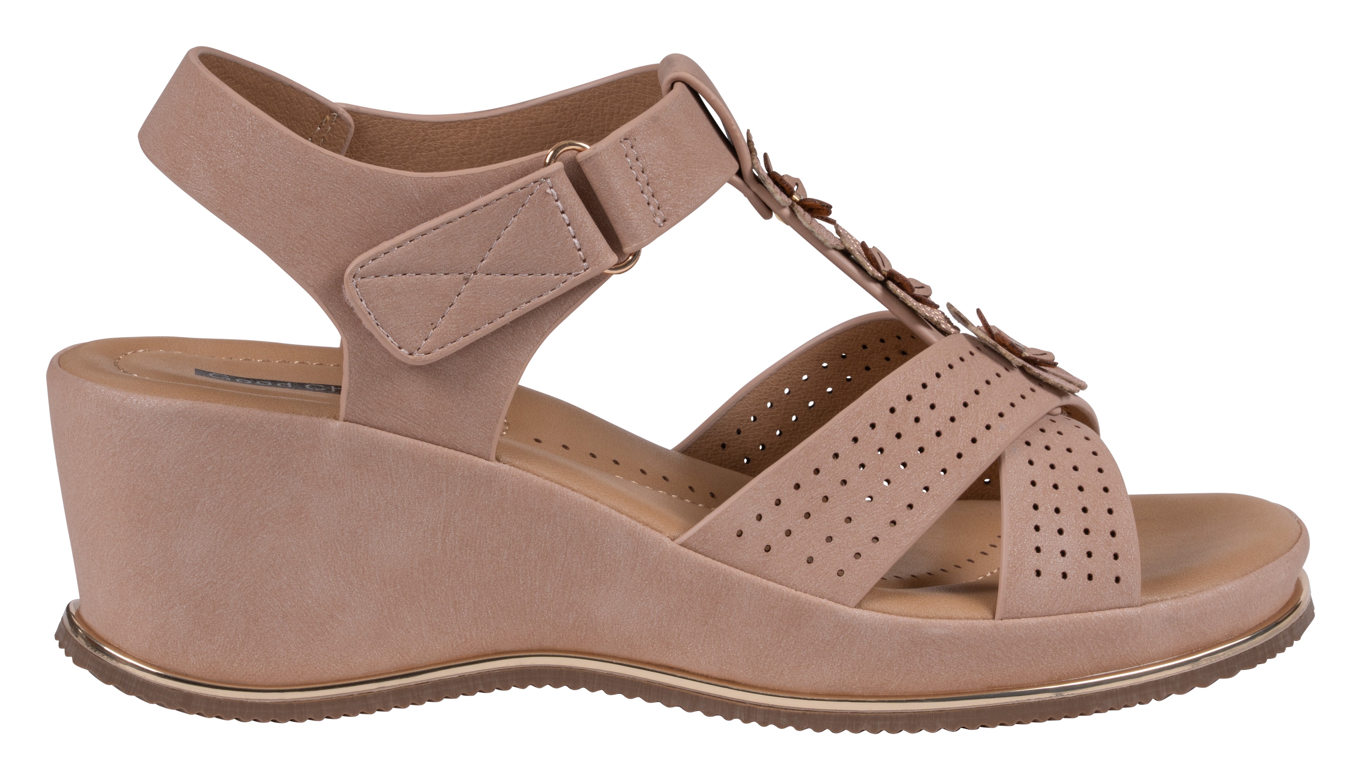The Miko sandal by GC Shoes offers a perfect blend of comfort and feminine style. Featuring perforated cross straps and delicate floral accents, it brings a touch of charm to any look. The adjustable ankle strap ensures a secure fit, while the cushioned insole and low wedge heel provide all-day comfort and support.