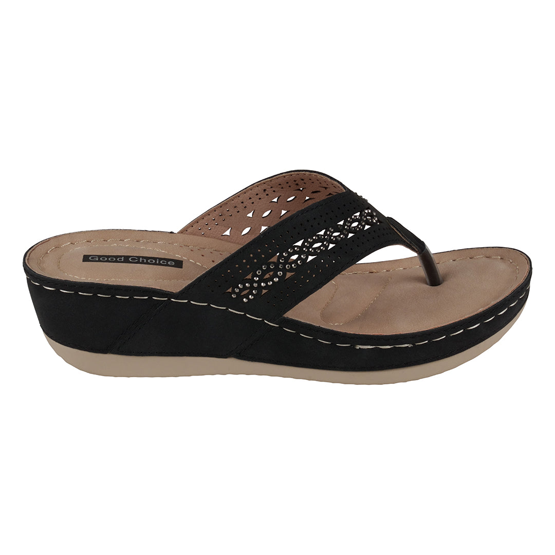 Get the support you deserve with the Bari wedge sandal from GC Shoes. This rhinestone-embellished pair features a cushioning midsole, comfort footbed, and arch support to feel comfortable all summer day long.